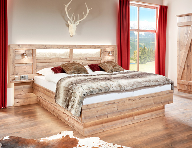 Das Besondere? Die Kopfteile sind flexibel gestaltbar: von rustikalem Fachwerk über eine gemütliche Berghüttenoptik bis hin zum charmanten Blockhaus- oder Panoramalook mit individuellem Bildmotiv. Jeder Stil weckt Erinnerungen an Freiheit und klare Bergluft.